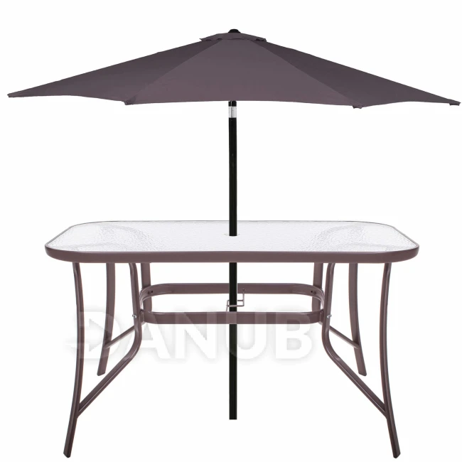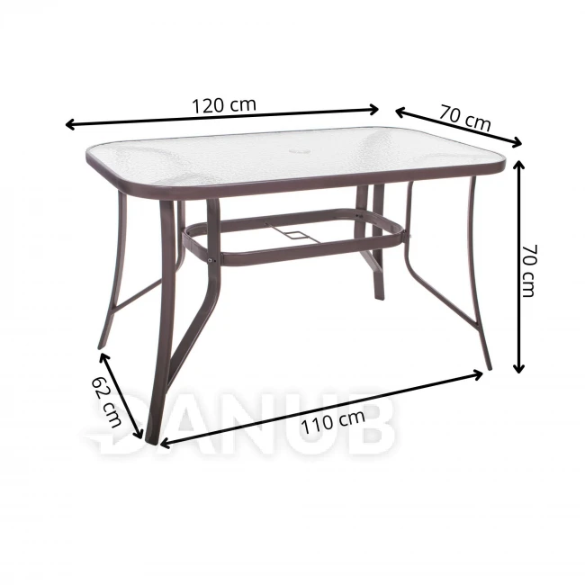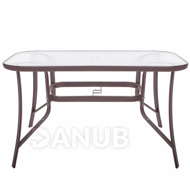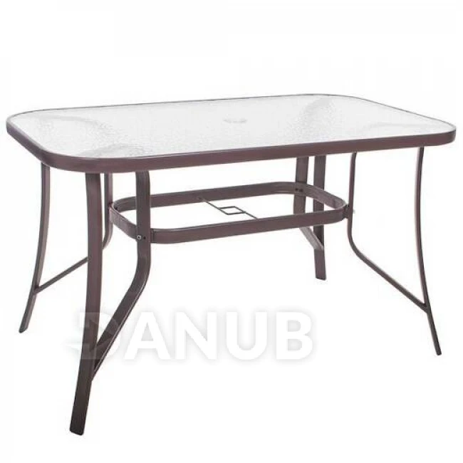 Zahradní stolek 120x70x70cm - kov + sklo, hnědý