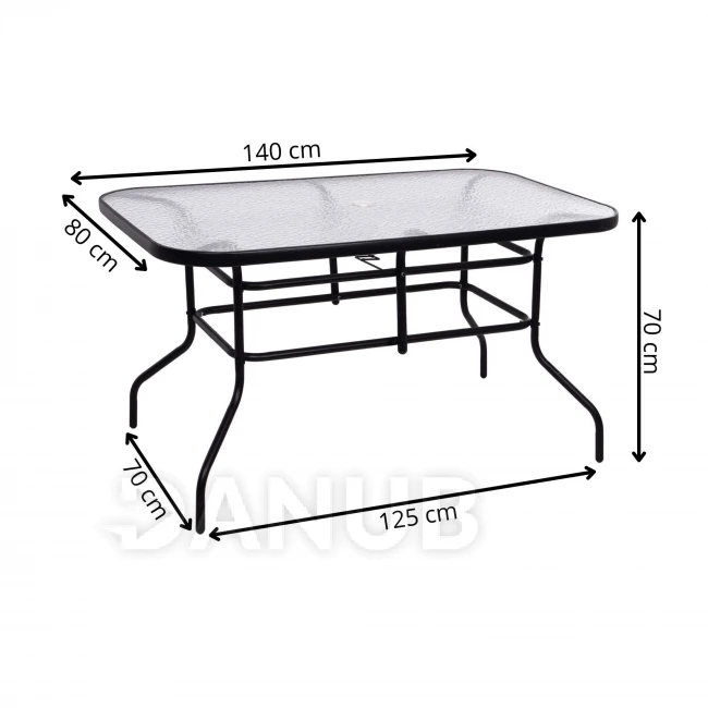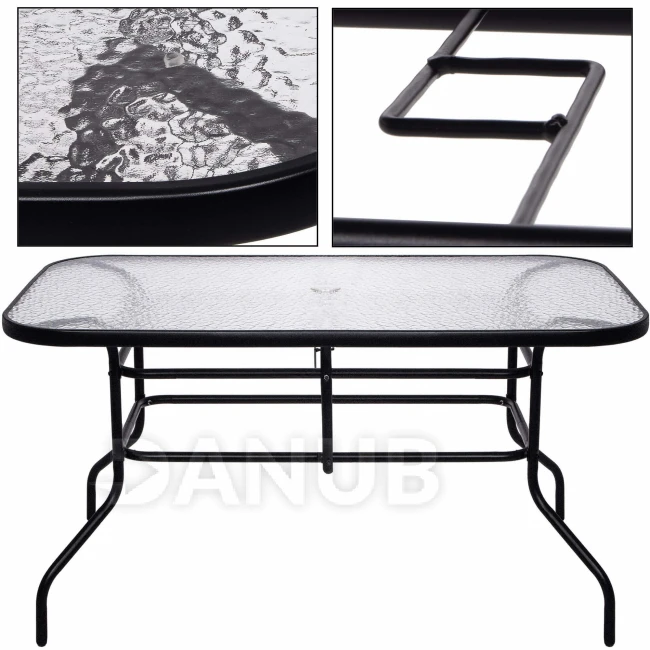 Zahradní stolek 140x80x70cm - kov + sklo, černý