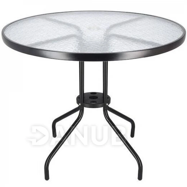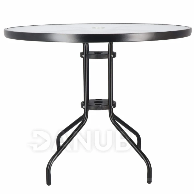 Zahradní stolek 90cm - kulatý - kov + sklo, černý