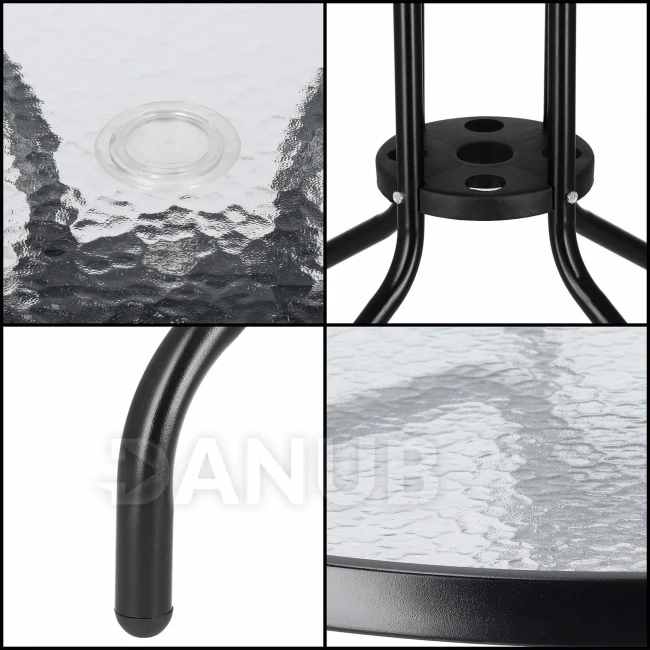 - Průměr otvoru pro slunečník ve skle: 44 mm