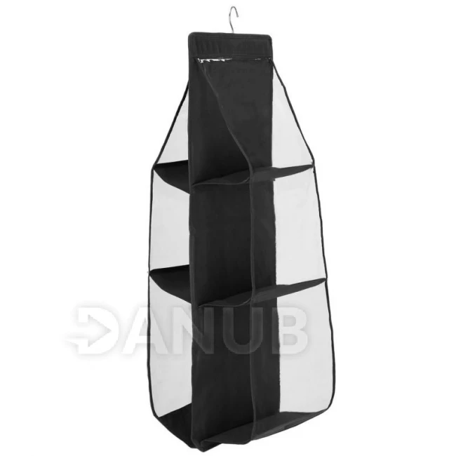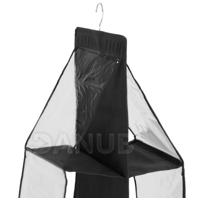 Závěsný organizér Springos je skvělou volbou pro promyšlené rozvinutí interiéru šatníku. Výrobek má formu vysouvací police se 6 policemi. Textilní materiál, ze kterého byl organizér vyroben, je zavěšen háčkem. Tato funkce usnadňuje přesun organizérana jiná místa. Výrobek má podlouhlý tvar. Černé barvy jsou univerzálním základem, který je nenápadný a zároveň dokonale plní svou úlohu. Díky nádobě udržíme pořádek v šatníku, čímž ušetříme polovinu místa.