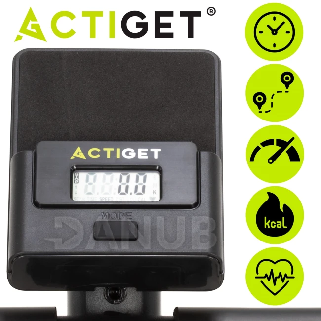 - Tréninkový počítač zobrazuje čas, rychlost, vzdálenost, spálené kalorie, ODO a srdeční frekvenci