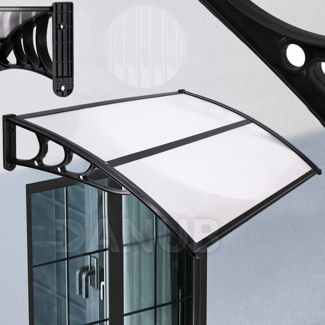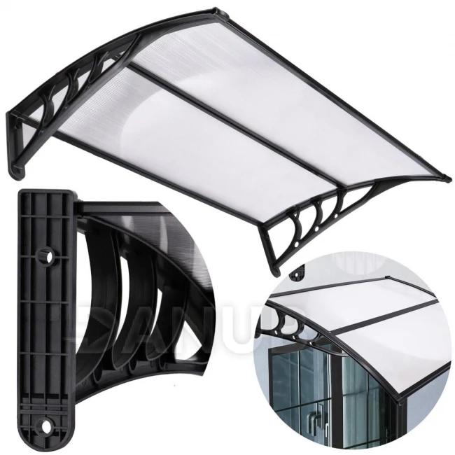 Stříška na vchodové dveře - 80x120 cm - černá/průhledná