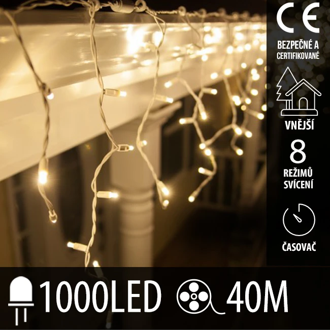 Vánoční led světelná záclona vnější - programy - časovač + dálkový ovladač- 1000led - 40m teplá bílá