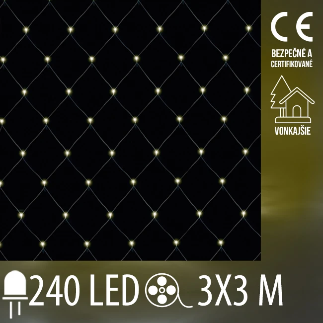 Vánoční led světelná síť vnejší - 240led - 3x3m - teplá bílá