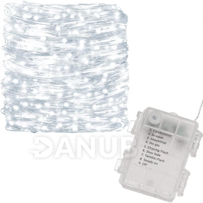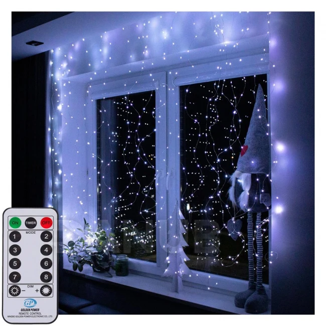 Vánoční led světelná záclona na baterie vnější - 300 led - programy - ovladač - 3x3m - studená bílá