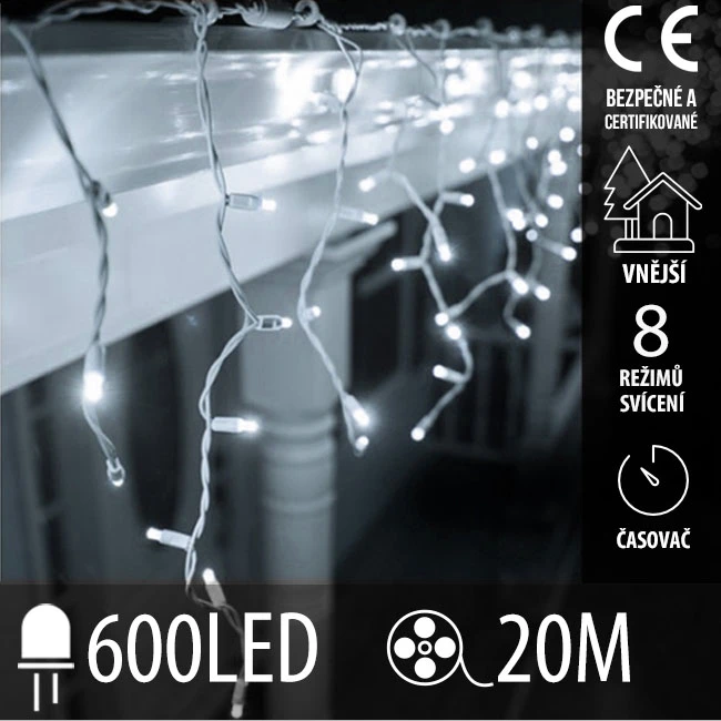 Vánoční led světelná záclona vnější - programy - časovač - 600led - 20m studená bílá