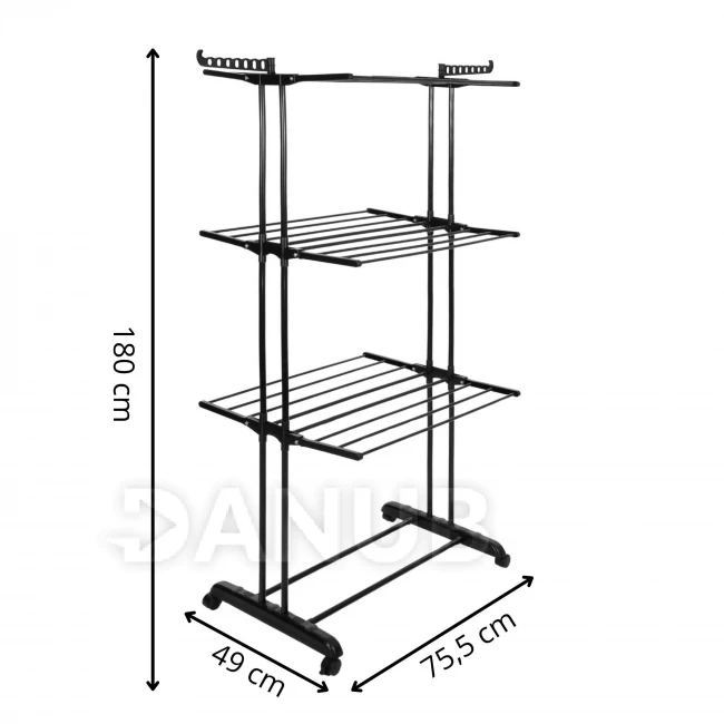 Vertikální sušák prádla na kolečkách - skládací - 180x75,5x49 cm