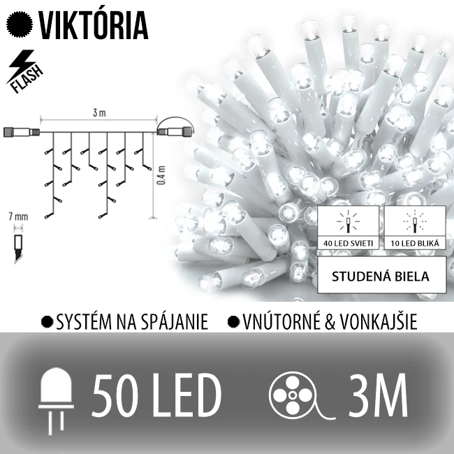 Viktorie spojovatelná led světelná záclona vnější flash - 50led - 3m studená bílá / flash probliknutí studená bílá - bílý kabel