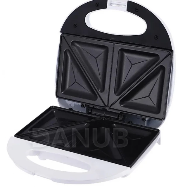 Udělejte dokonalý francouzský toast nebo horký sendvič s touto praktickou 750 W horkou sendvičovou troubou! Nepřilnavé pečící plechy zaručují, že připravované jídlo lze snadno vyjmout a přístroj se snadno čistí. Je vhodný pro přípravu dvou sendvičů současně, takže rychlým a rovnoměrným pečením ušetříte čas a peníze. Ideální volba k snídani nebo lehké večeře. Moderní, elegantní bílý spotřebič stylově zapadne do každé kuchyně.