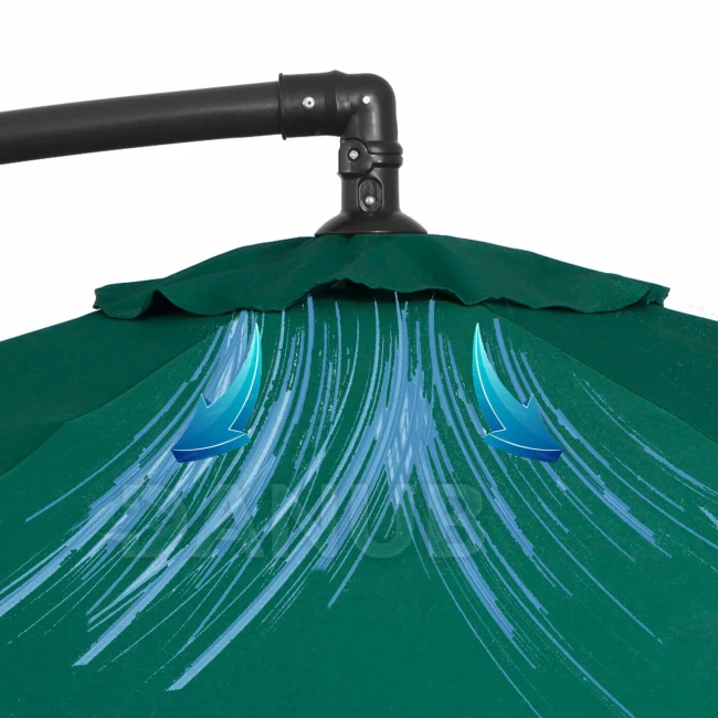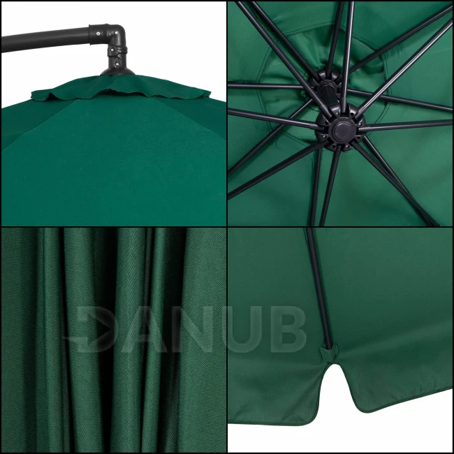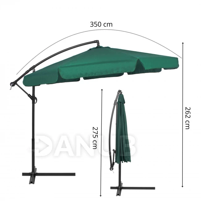- Šířka materiálu slunečníku (včetně volánů): 350 cm