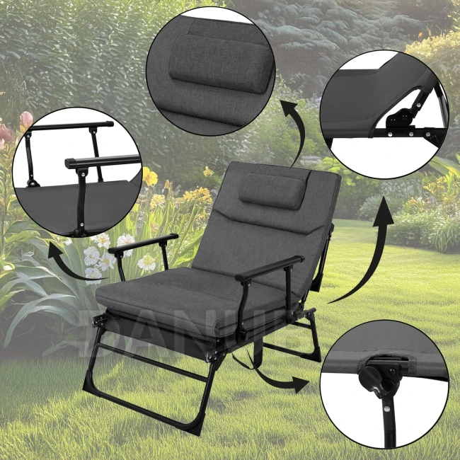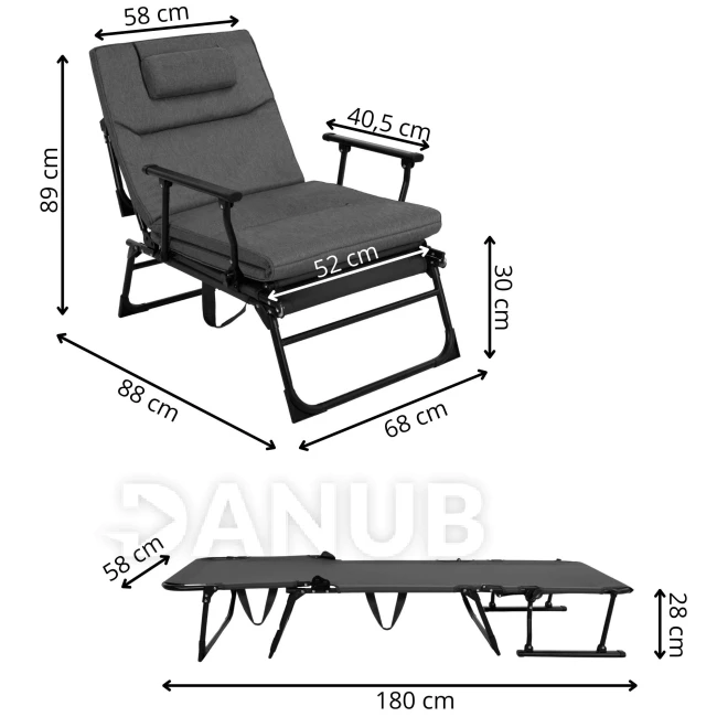 - Produkt 2v1: židle, která se dá rozložit do ležící polohy