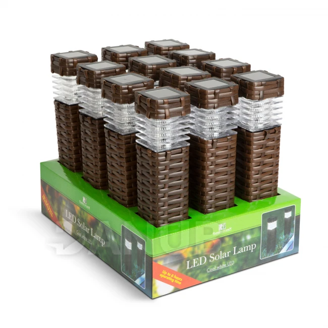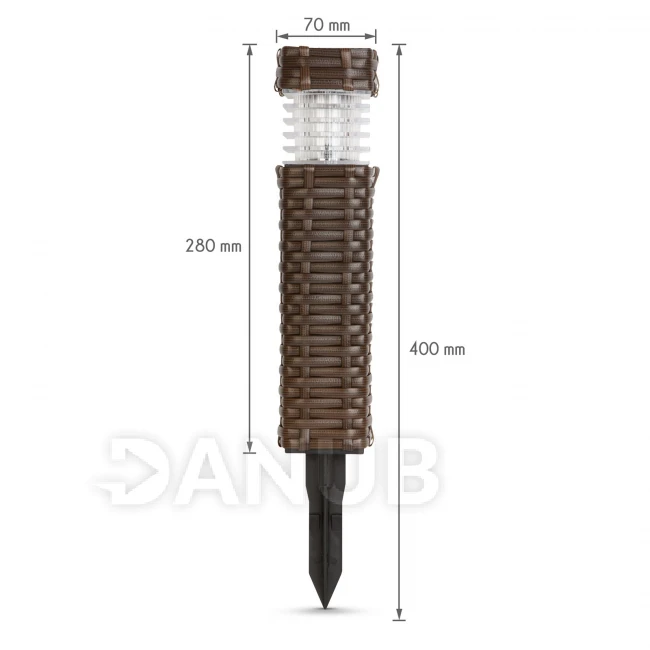 Udělejte svou zahradu výjimečnou s touto LED solární lampou. Můžete ji použít jako směrové světlo nebo jako dekoraci. Pomocí zapichovacího trnu ji můžete snadno a rychle umístit. Po setmění se světla automaticky zapnou a po východu slunce vypnou. Během dne solární články přemění sluneční paprsky na energii a uloží do akumulátoru. Hnědá barva a ratanový efekt dodávají lampě moderní vzhled, silná boční stěna je odolná. Produkt také dokonale harmonizuje s našimi produkty 11535, 11482A. .