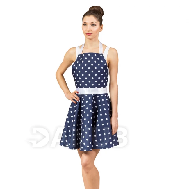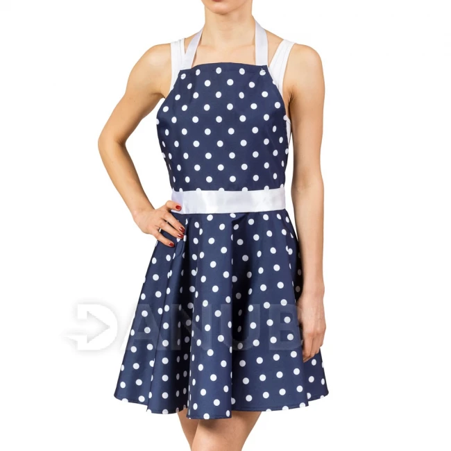 Ženská zástěra v podobě tečkovaných šatů.