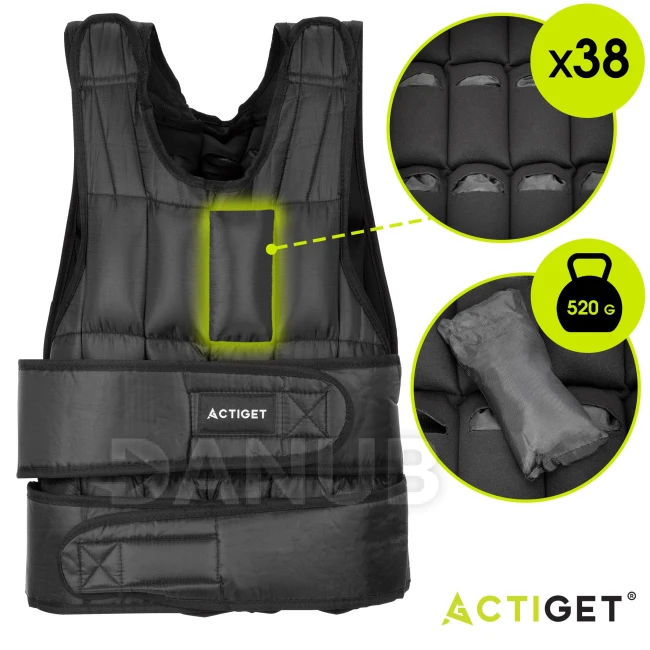 Zátěžová vesta Active pro trénink s nosností 20 kg - nastavitelná - černá