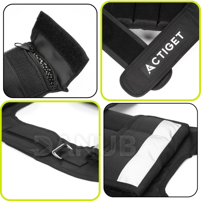 - Kapsy naplněné železnými pouzdry na kuličky, uzavřené zipem a suchým zipem
