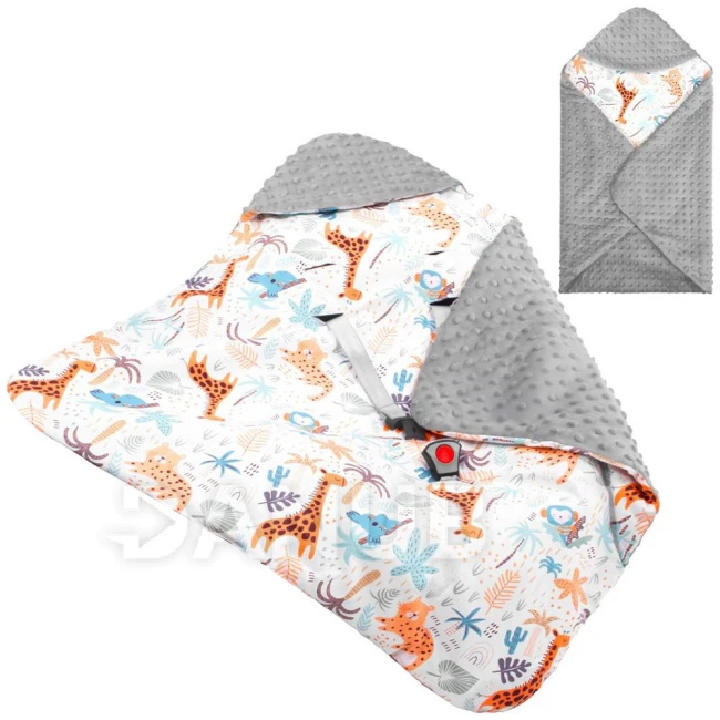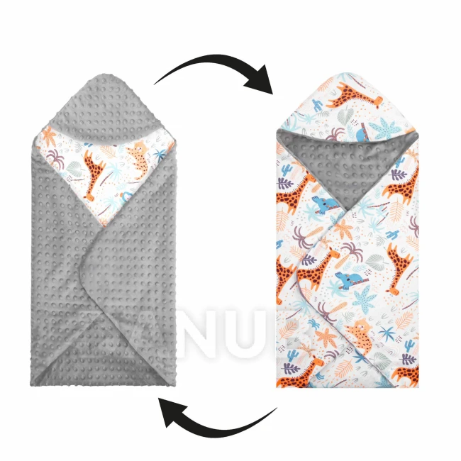 Zavinovací deka do autosedačky - 77x77cm - oboustranná - s kapucí - šedá